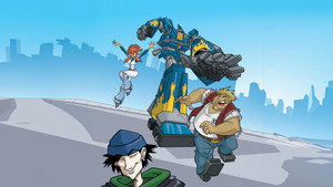 Megas XLR is a series about an overweight couch potato named Coop who stumbles across a giant robot in a junkyard. He soon discovers that the robot was sent from the future when a woman named Kiva returns to the past to claim what is rightfully hers, though Coop made so many modification to the machine so he's the only one who can fully operate it. Things also heat up when Coop learns that an alien race called the Glorft are also after his MEGAS robot, so he teams up with Kiva and his best friend Jamie to fight them off, though mostly so he can keep his new toy.